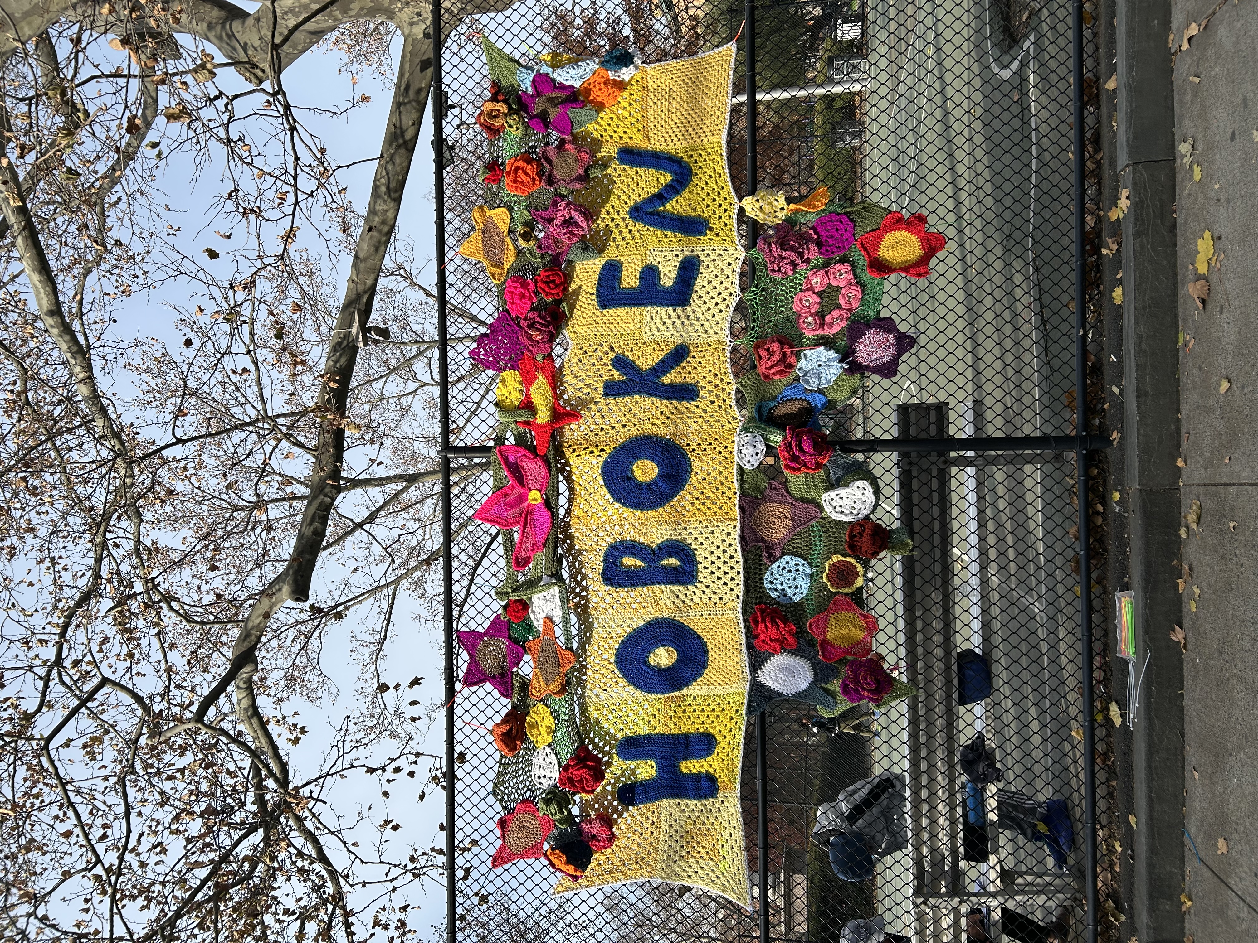 Hoboken Business Alliance Carmen Community Artist Crochetmural “The Flourishing Hoboken Community YarnArt”